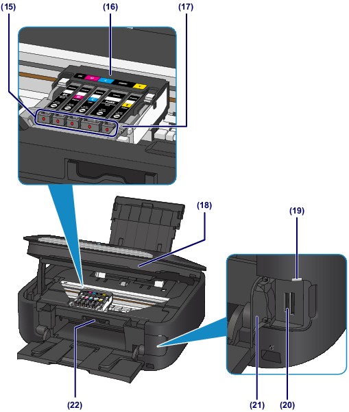 Scans originals. Open it to replace an ink tank, to check the ink lamp, or to remove jammed paper inside the machine. When opening the scanning unit / cover, lift it with the document cover closed.