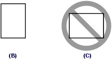 Always load paper in the portrait orientation (B). Loading paper in the landscape orientation (C) can cause paper jams.