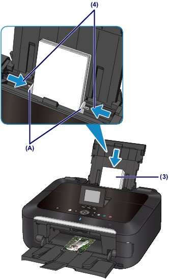 (4) Slide the paper guides (A) to align them with both sides of the paper stack.