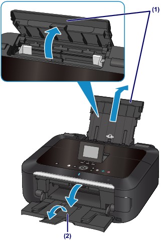 (1) Open the paper support, raise it, then tip it back.