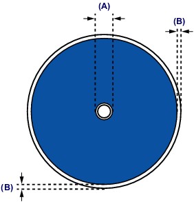 The printing area of the printable disc is from 0.67 inches (17 mm) of the internal diameter to 0.04 inches (1.0 mm) from the external diameter of the printing surface.