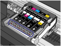 (Push) on the ink tank until the ink tank clicks into place. If it does not click into place, make sure that the orange protective cap has been removed from the bottom of the ink tank.
