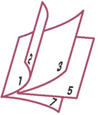 The booklet printing function allows you to print data for a booklet. Data is printed on both sides of the paper. This type of printing ensures that pages can be collated properly, in page number order, when the printed sheets are folded and stapled at the center.