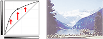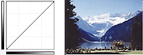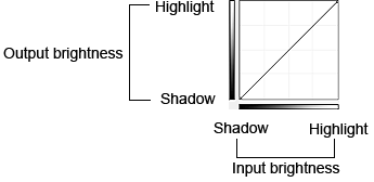 The midtone data of the input side is stretched toward the highlight of the output side, resulting in a bright-toned image when viewed on a monitor.