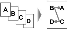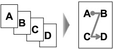 If you use this function in combination, you can copy eight original pages on one sheet of paper. In this case, four original pages are copied on each side of paper.