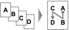 When you select 4-on-1 copy for Layout in Standard copy, you can copy four original pages onto a single sheet of paper by reducing each image. Four different layouts are available.