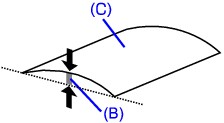 NoteDepending on the media type, the paper may be smudged or may not be fed properly even if it is not curled inward. In such cases, follow the procedure described below to curl the paper outward within 0.1 inch / 3 mm (B) in height before printing. This may improve the print result.